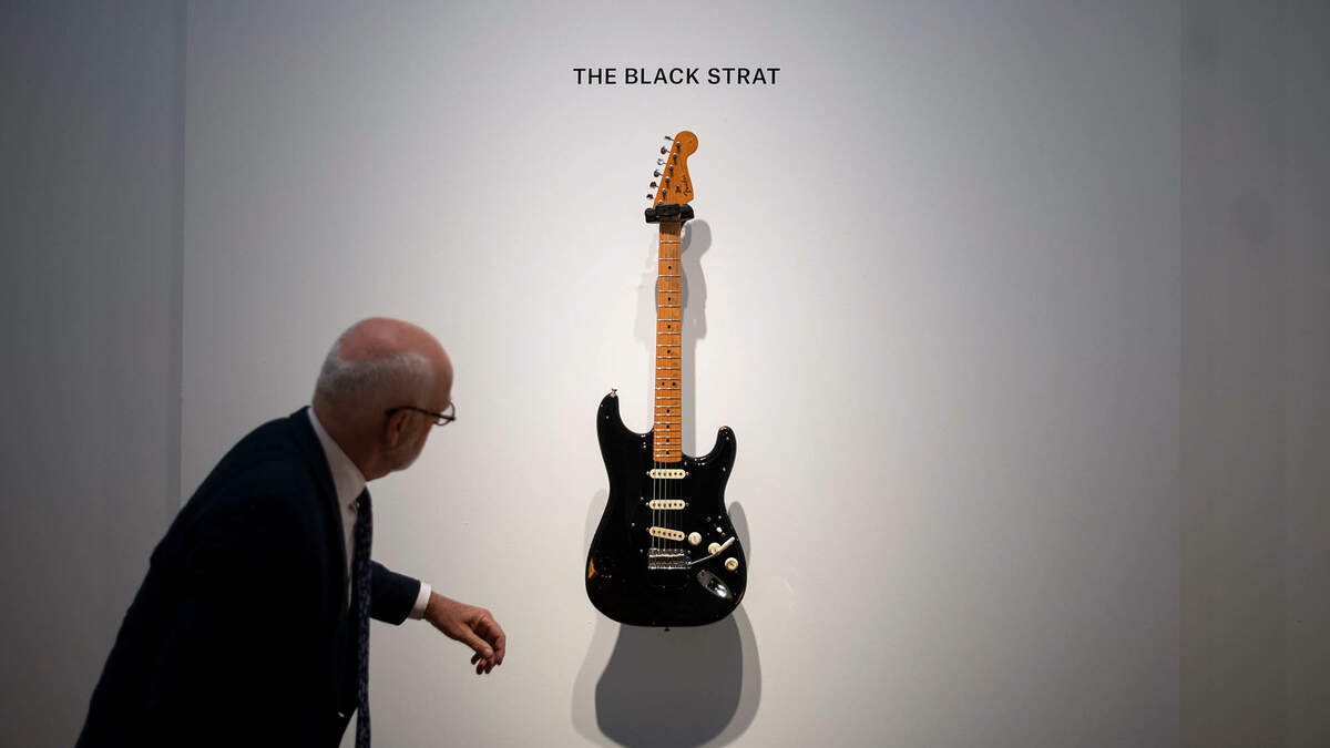The Black Strat set a world record for the highest-ever price for which a guitar has sold at auction, eclipsing (pun intended) the $2.41 million price of John Lennon's "Love Me Do" Gibson acoustic from The Beatles' Ed Sullivan Show performance in 1964.